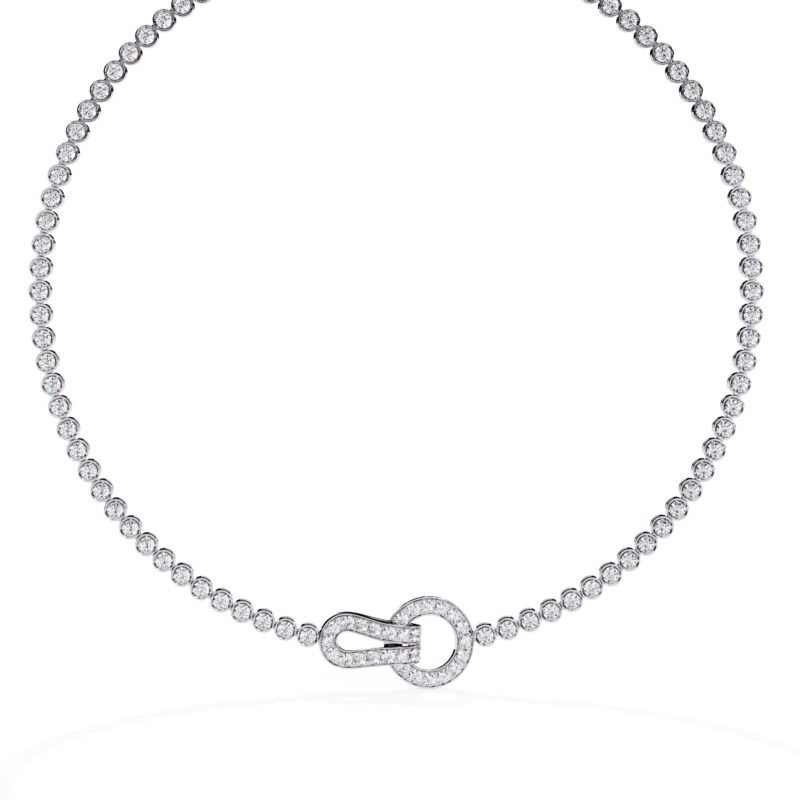 A celebration of continuous brilliance and symbolic connection, the Infinite Sparkle Buckle Necklace is a luxurious statement piece. The entire necklace is meticulously adorned with an unbroken line of brilliant round lab-grown diamonds, each selected for its exceptional VVS clarity and E-F color, ensuring a breathtaking display of light.