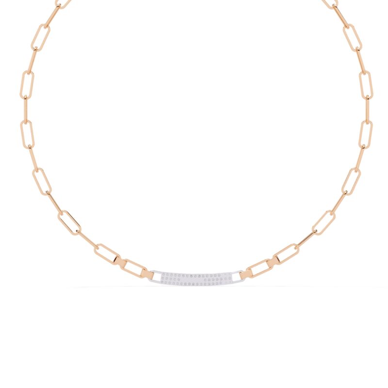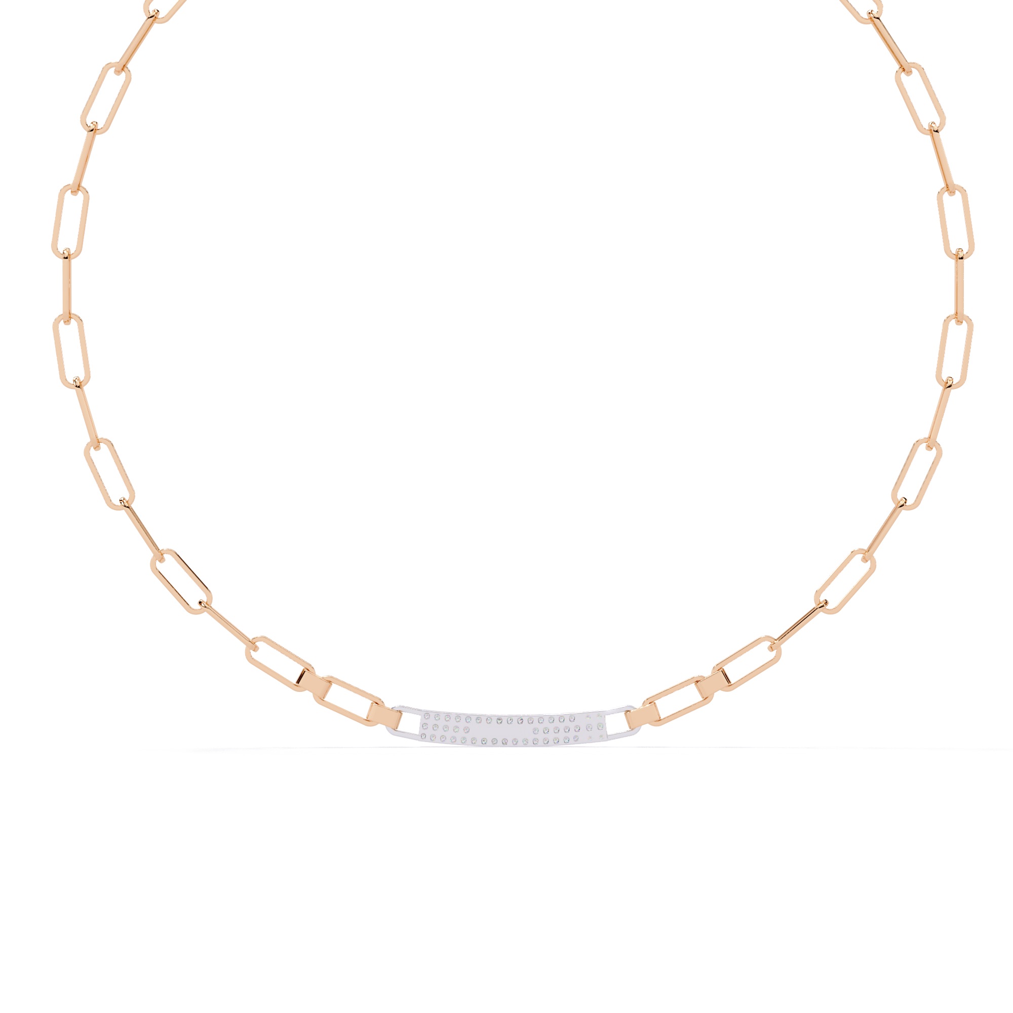 At its heart lies a sleek, rectangular ID bar, meticulously paved with brilliant round lab-grown diamonds. Each diamond, chosen for its exceptional VVS clarity and E-F color, creates a dazzling strip of light that contrasts beautifully with the warm gold of the links. This design offers a perfect balance of strength and shimmer, making it a versatile accessory for those who appreciate refined individuality.